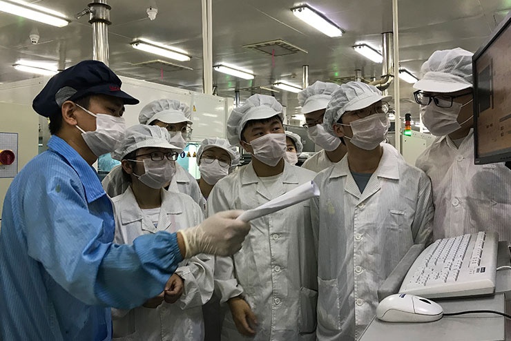 本次教學實習活動是從2019年9月2日開始的。教學實踐期間,鴻禧能源專業講師團隊采用理論課堂與現場實踐相結合的方式,使學生在學習電池片工藝流程、設備運作原理等理論知識的同時,跟隨講師深入車間一線,到產線上觀摩學習,了解設備的結構和功能、產線工藝異常排查和分析等。真正做到知行合一,學以致用。