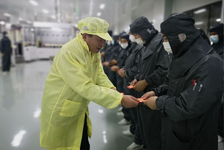 大年初一由公司高管進車間給職工發(fā)放過年紅包,是鴻禧能源自成立以來,始終堅持向留崗職工表示感謝的一種方式?!按蠹倚履旰?”“大家辛苦了!”簡潔的話語,是公司對鴻禧家人們的親切問侯和暖心祝福,感謝鴻禧家人們?yōu)楣镜陌l(fā)展作出的不懈努力和持續(xù)奮斗!